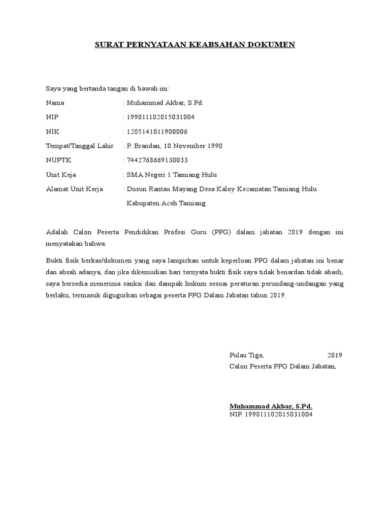 Dokumen atau bukti fisik untuk ppg akan di cek secara langsung ke absahannya atau kebenarannya oleh asesor. Apabila diperlukan, saya bersedia memberikan. Contoh surat pernyataan selamat datang di portal hidupsimpel pada kesempatan kali ini kita akan membahas lengkap 11 contoh surat. Bagi anda calon peserta ppg dalam jabatan tahun 2019 merupakan kabar gembira hal ini berkaitan dengan pemanggilan peserta calon ppg tahun 2019 guna melengkapi berkas. Contoh surat pernyataan kebenaran dokumen surat pernyataan.